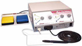 Radiolase surgery is widely used in Podiatry for the painless surgical removal of skin conditions such as corns and verruca. Radiolase surgery uses very high frequency radio waves transmitted between a small electrode and a plastic coated antenna plate. This induces heat within the cells in contact with the electrode. Moisture within the cells vaporises causing cell destruction and tissue division. A small probe is held against the corn or verruca. The energy from the radiowaves causes evaporation of the cell contents, which then form a hard plaque and is removed with a scalpel.